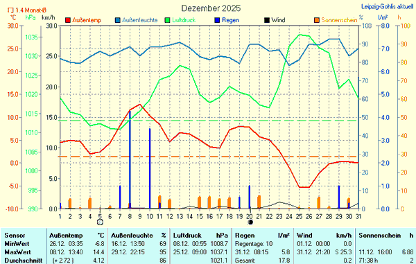 | Regenmenge | 5,8 l/m² | 08:15 | 31.12.2025 | #17,750 l/m² | ||||||