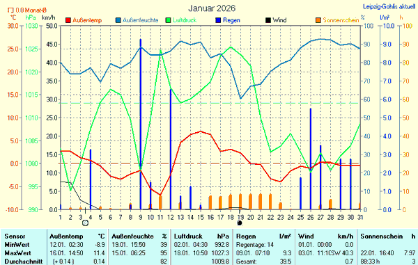 | Luftdruck | 992,8 hPa | 04:30 | 02.01.2026 | 1027,3 hPa | 10:50 | 18.01.2026 | 1009,8 hPa | |||